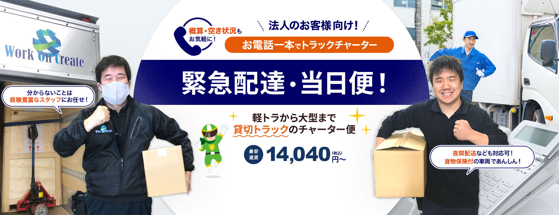 ワークオンクリエイトの緊急配送・当日便を是非お試しください!!